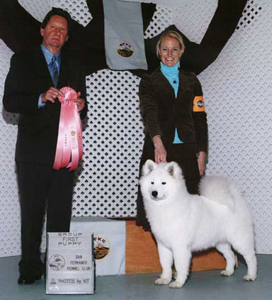 Faith went Best Puppy at her debut dog show in January 2006 and went on to win the Puppy Working Group. She again went Best Puppy at the 2006 San Diego Specialty under breeder/judge Rudy Munoz and the next day did it again and went on to win the Puppy Working Group. Faith finished her championship with back to back majors and now enjoys retirement from the show ring. Leslie was very gracious to let us steal Faith on occasion to go to the shows and also let her live with us when she had puppies. She had 2 beautiful litters, one in 2010 and one in 2011. Now her kids and grandkids are out in the ring. She is enjoying the companion life with her family! Thank you Maunu family for sharing this sweet girl with us!